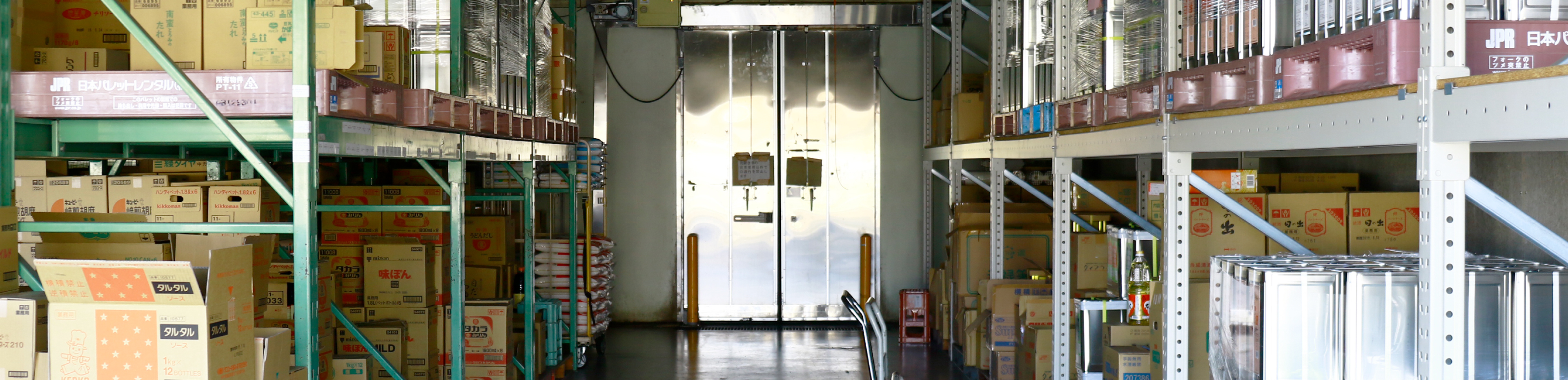 膨大な商品を管理する当社の食品庫は、県下でも最大級の規模を誇っています。一角には最新の冷凍及び冷蔵システムを完備。温度変化や様々な条件による品質の低下等が生じないよう、常に綿密な品質・衛星管理に努めています。そして、同様に厳しく管理された独自の配送システムによって、お客様のお手元にスピーディーにお届けします。